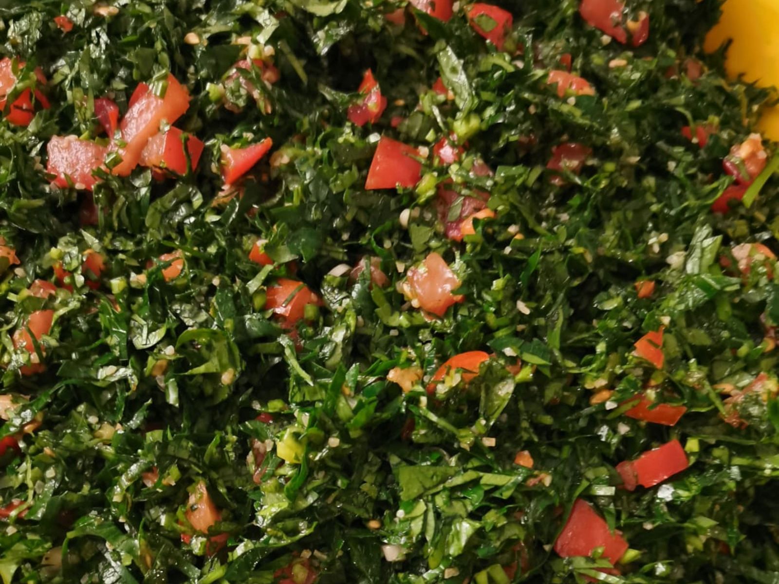 Petersilie, Tomaten, Minze und Burgul Salat